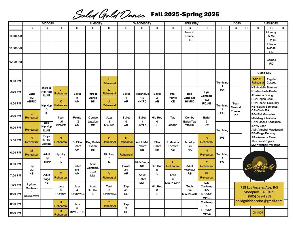 SCROLL DOWN FOR THE NEW FALL/SPRING SCHEDULE